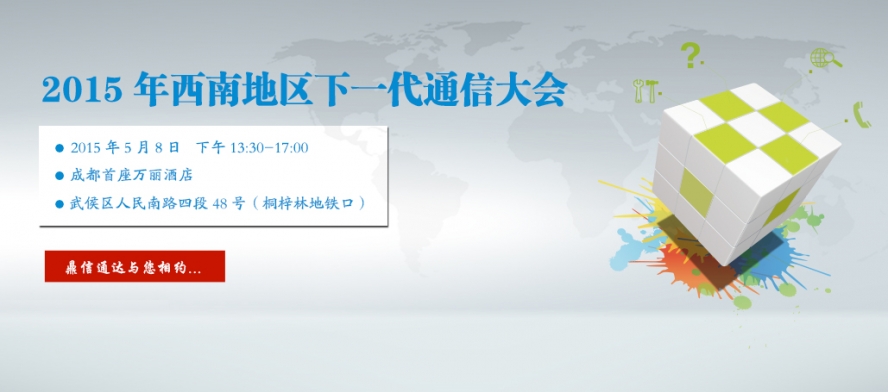 “2015年西南地區(qū)下一代通信大會” 將于2015年5月8日,在成都首座萬麗酒店隆重舉行。大會由成都智科通信技術(shù)有限公司牽頭主辦,聯(lián)合通信圈內(nèi)多家廠商協(xié)...