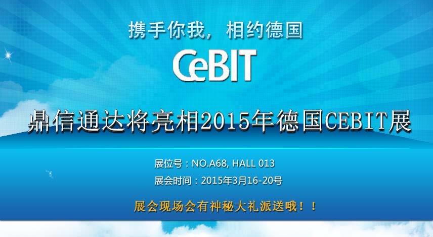 2015年3月16-20號,深圳市鼎信通達科技有限公司出席德國漢諾威消費電子、信息、及通信技術(shù)展覽會,展會期間鼎信通達將有多款最新研發(fā)產(chǎn)品首次亮相市場...